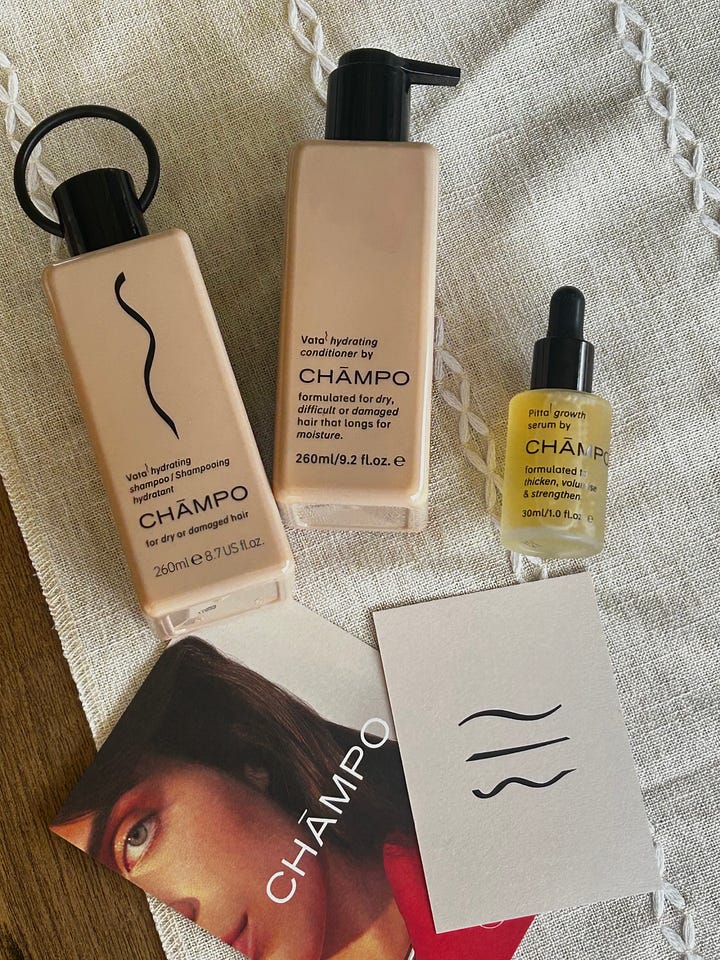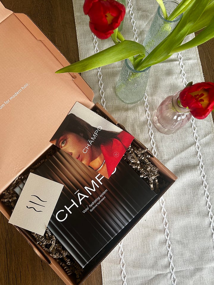 Speaking of self-care, I was so excited to be sent a luxury hair growth set from Champo* after sharing more on TikTok about my motherhood journey. They got in touch to see if I was interested in taking their Hair Quiz to find out which hair type I had and then sent me a beautiful set of their shampoo, conditioner, and hair oil. I have to say, I’ve used it for a few weeks now and HIGHLY recommend. It lathers so well, makes my hair super soft and shiny, and smells amazing. Having some new products to try really elevated my showers this month.