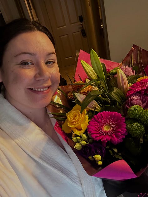 Lately, our quality time together has been spent driving to hospital appointments and putting together baby furniture. I was so happy to go away for a few nights, go swimming, get a pregnancy massage, and enjoy some nice meals together. We had some of the most incredible food and really got a chance to soak in this special time together. For my actual birthday, I started the day with a beautiful breakfast, went for a swim, got a massage, received a beautiful bouquet of flowers from my best friend, took a nap, had a delicious dinner and dessert with my husband, and then passed out watching Netflix in bed by 11pm. A dream.
